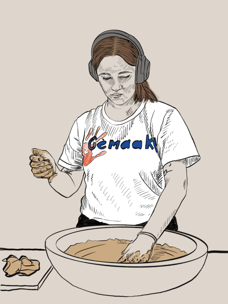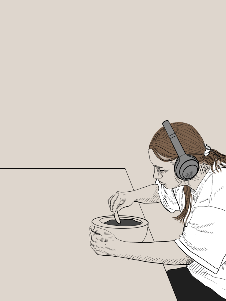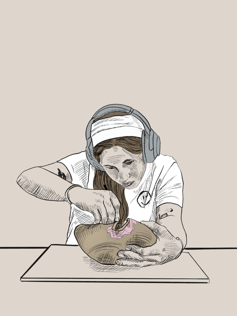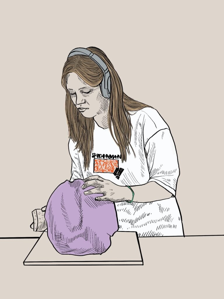Het totale plaatje is het werk geworden. De plek waar ik heb gewerkt, in het keramiek lokaal. Het neerzetten van mijn ipad waar ik een timelapse mee heb gemaakt. De screenshot die ik maakte om daarna na te tekenen. Het sculptuur wat ik maakte tijdens die timelapse. Het werk is het hele plaatje van het maken. Het hele plaatje is troostend voor mij.