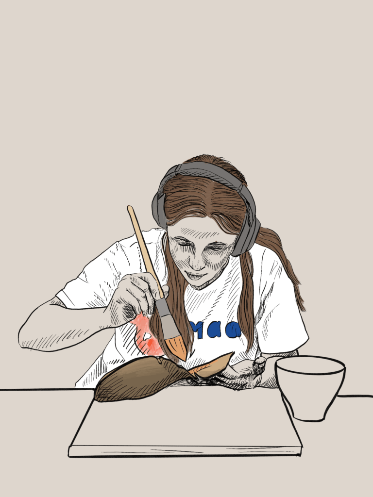 Side note: Dit hele proces is nu bezig met het afronden. Ik heb bijna elke keer mijn koptelefoon opgehad. Een manier om mezelf af te sluiten van mijn omgeving. Deels helpt het met focussen, maar er is ook een stukje vermijden wat mensen daarin aflezen. Steeds verder in dit proces, ben ik mijn koptelefoon af gaan doen. Ik werk nog steeds lekker met muziek op. Ook dat is troostend. Toch is het af en toe ook goed om zonder koptelefoon te werken en met mensen te communiceren. Want ook dat zorgt ervoor dat ik me goed voel. Het viel mij de laatste paar weken op, dat ik steeds vaker mijn koptelefoon om mijn nek heb hangen in plaats van op mijn oren heb staan. Ik ben veel meer bezig met de communicatie met anderen. Ik stel mij meer open voor anderen.