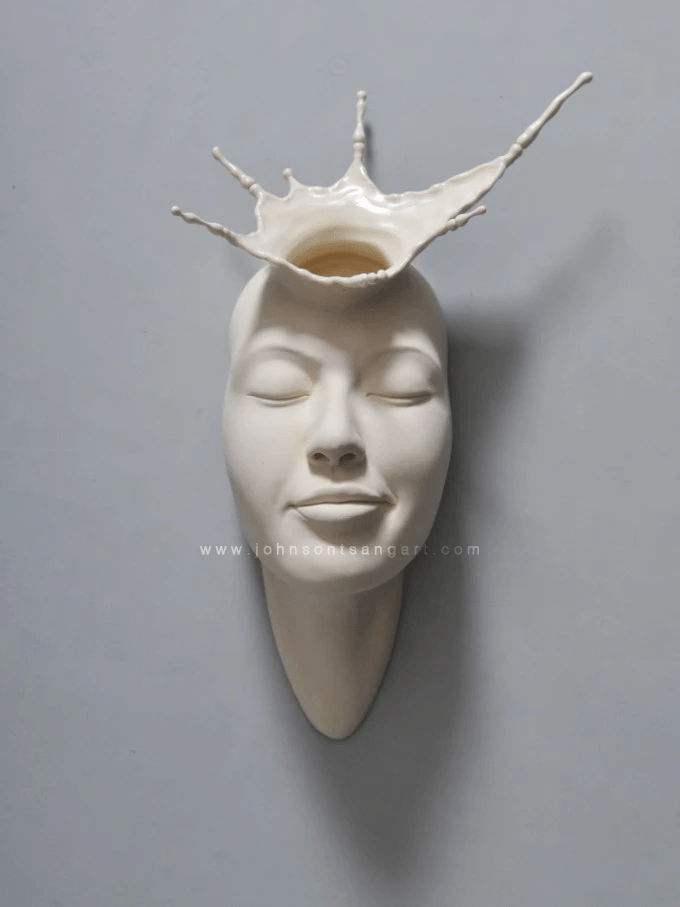 Johnson Tsang. Ik ben eigenlijk een beetje te laat achter deze kunstenaar gekomen. deze kunstenaar werkt ook met gezicht en de vorm daarin. Zijn serie Open mind, maakt letterlijk openingen in de hoofden. Ik vind het heel fascinerend hoe het lukt om het gezicht zo echt te laten lijken en dat hij er toch iets interessants mee weet te doen.